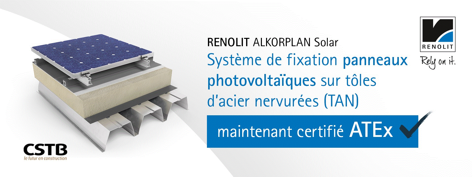 RENOLIT ALKORPLAN Solar est un système complet de toiture photovoltaïque permettant la surimposition en toitures-terrasses de modules photovoltaïques rigides cadrés. Ces modules sont posés parallèlement au plan de toiture sur un complexe d’étanchéité isolé, fixé mécaniquement sur tôles d’acier nervurées (TAN).Le système RENOLIT ALKORPLAN Solar garantit la stabilité des ouvrages et la sécurité des équipements. Il a été validé par des tests rigoureux en conditions de vent et de neige. Cette solution adhère aux mesures de sécurité standards anti-chutes. Elle est donc aussi bien sécurisée pour les opérateurs que les utilisateurs.